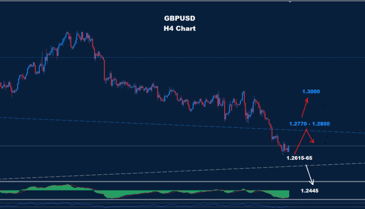 As we see on the chart, this support zone 1.26115-65 could push for a rebound toward 1.2770-1.2840 which in turn could cause a drop.