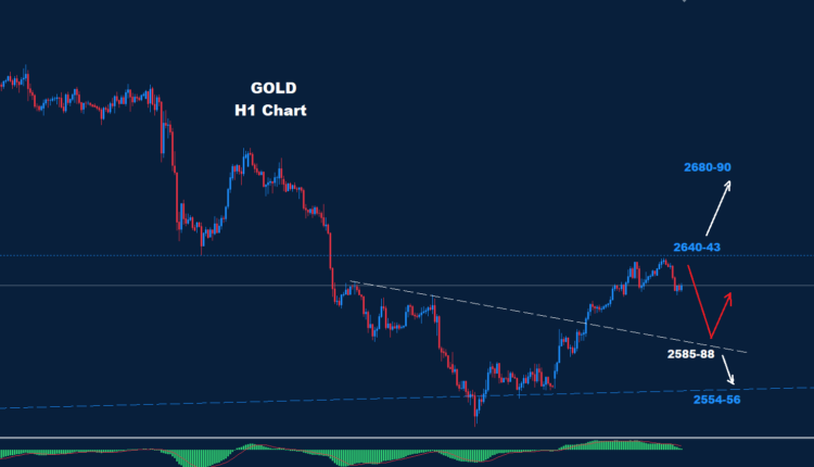 As we see over the chart, the market is facing Intraday resistance around 2640-43. If prices hold below it, then another drop back toward 2585-88 is likely.