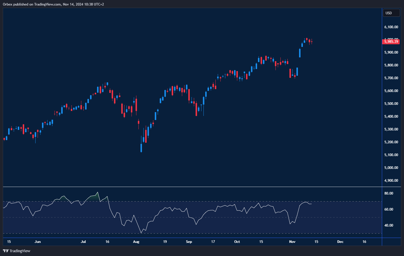 The S&P fell for the first time since the presidential election as bond yields spiked as inflation failed to touch the Fed’s targeted 2% level. Most of the major S&P 500 sectors were lower as bond yields jumped higher. With the index hitting record after record, traders will be wondering how long this can sustain, with a possible correction just around the corner. The index holds above 5,800, with 6000 being the resistance to crack.