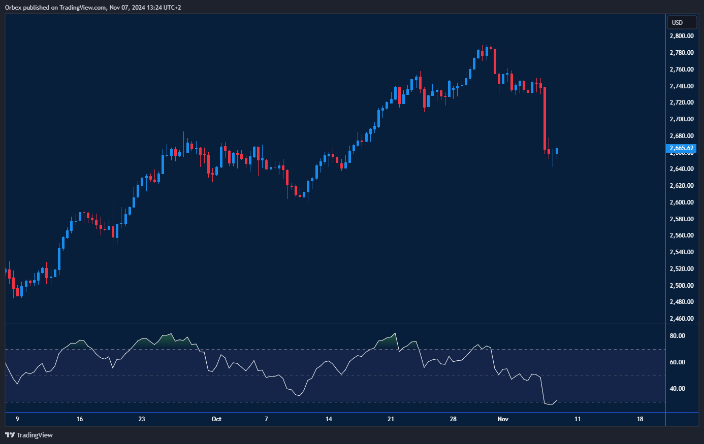 Gold continues to feel the effects of the US Presidential Election as traders see that a Trump victory will lead to a progressive dollar, diminishing the appeal of the precious metal. This coupled with renewed optimism that Donald Trump will be able to reach a deal in the Middle East, has also weighed on gold prices. As the new President takes his seat in January, the Fed could change its outlook for 2025. 2620 is a sturdy support, and the price must be higher than 2700 before it can bounce back.