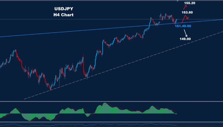 USDJPY managed to hit another drop correction movement where market managed to re-test support zone 151.40-50 yesterday