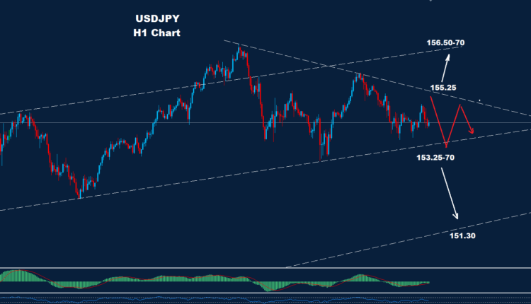 As we see over the chart, USDJPY started to build a triangle formation with resistance at 155.25 and support around 153.25-70.