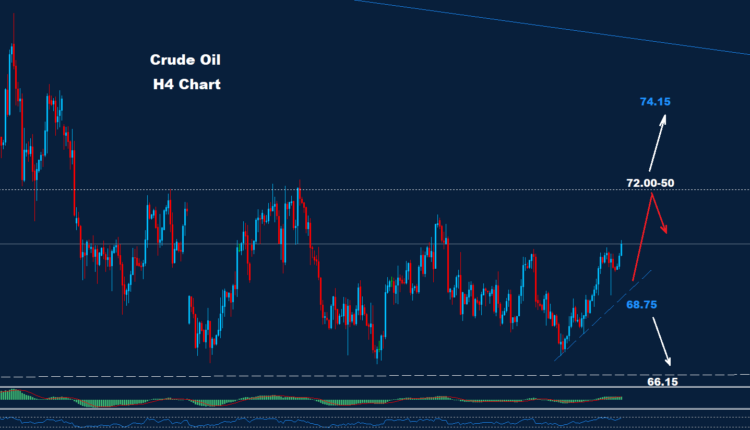 As we see over the chart, prices face support around 68.75. If the market holds above it, the advance wave will sustain toward the 72.00-50 zone.