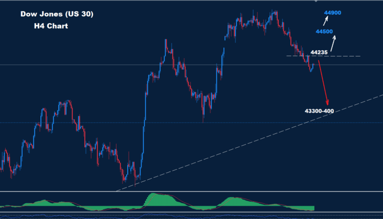 Above 44235 a, chance for a rebound toward 44500 and 44900 could hit the market.