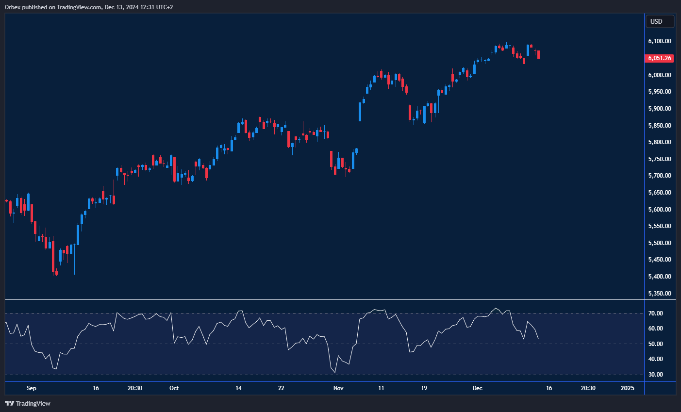 The S&P steadies as stocks began the week on a muted setting. The previous climb was on its way to hitting another record high before the pullback began. There is a sign that there is still plenty of bullish energy among market participants. A breakout would open the door to an all-time high above 6100, potentially putting the index on a continuation course. Before that, a pullback could be due to give the rally some breathing room. The round number of 6000 would be the first level to hope for further buying interest.