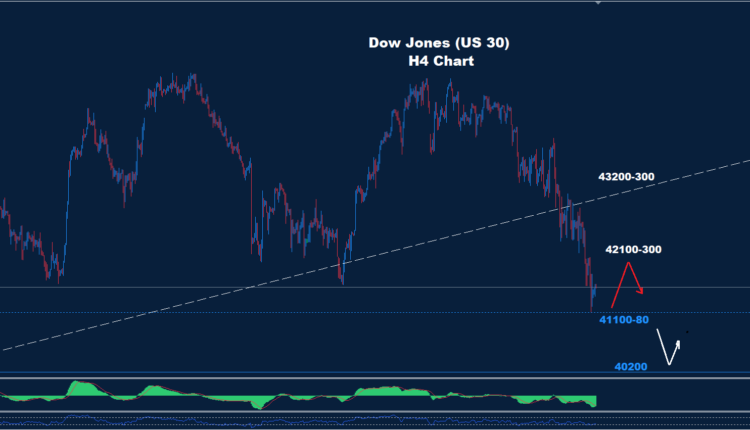 The Dow yesterday tested the edge of the support zone at 41100-80 which managed to push for some rebound correction.