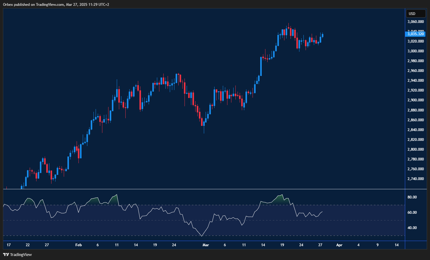 As the dollar looks for its next direction, the announcement of US auto tariffs heightened concerns over this week’s reciprocal measures. Gold traders could be fearing the worst if more buyers enter the dollar market as inflation looks to tick higher. On the flip side, these measures imposed by the new President could stoke fears of a broader trade war and global economic fallout as the yellow metal searches for another record. 3000 is the closest support, with 3060 a firm resistance.