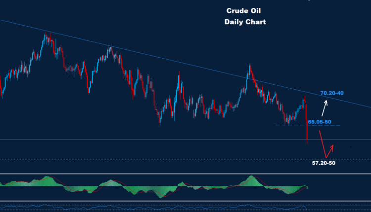 If prices remain below the 65.05-50 resistance zone, more of a drop to test the 57.20-50 support will be expected which could activate a rebound.