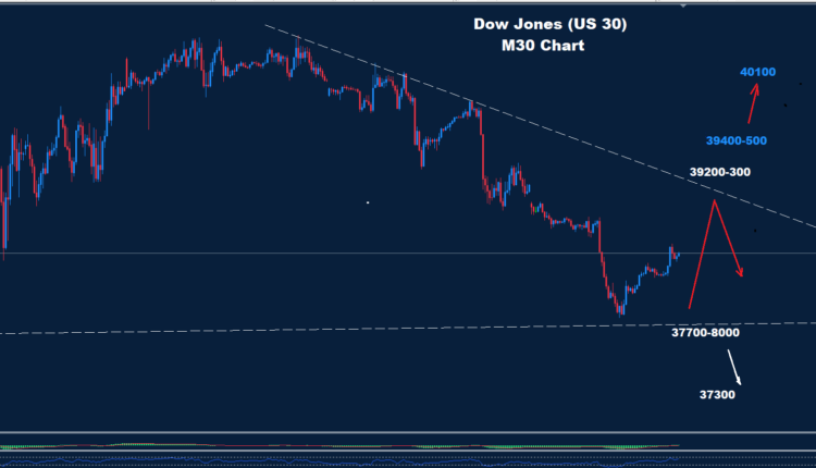 The Dow hit a low of 37827 yesterday which was around 300 pips from the target.