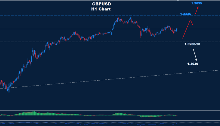 This trading zone could control prices between support 1.3200-20 and resistance 1.3435.