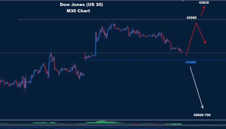 Dow managed to hold trades below resistance 42560 where managed to met target 42000 and closing from second target and support 41600