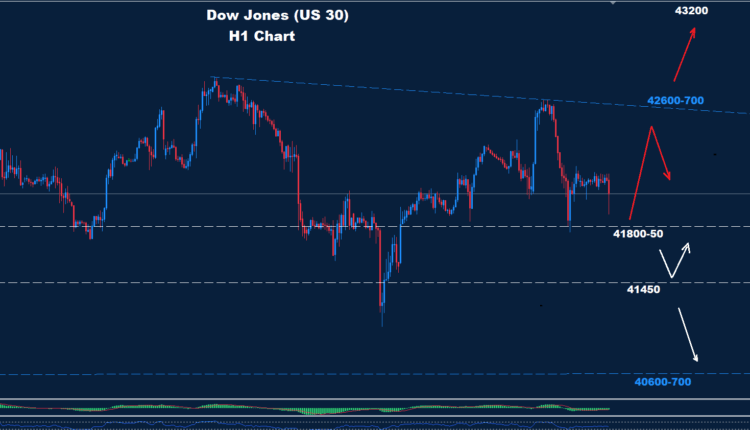 As we see over the chart, the market managed to re-test the support zone of 41800-50 where as long as prices hold above it, a chance for another rebound toward 42600 could hit the market.