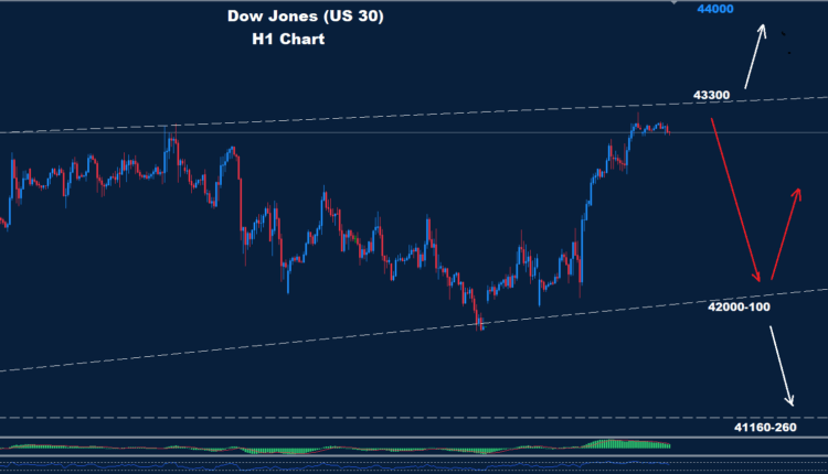 Above 43300 more advance could hit the market toward 44000.
