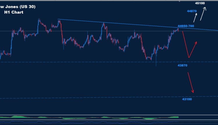 The Dow managed to test the support at 43870 and pushed for a rebound.