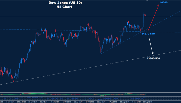The Dow managed to met the targets of 45100 and 45500 last Friday.
