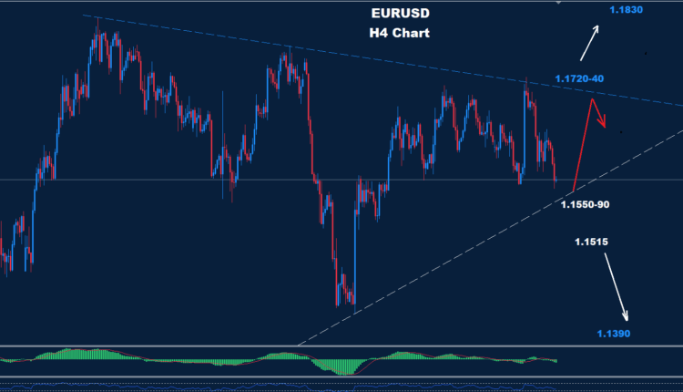 The Euro managed to hold above the support of 1.1550-90 to hit a rebound towards 1.1697 so far.