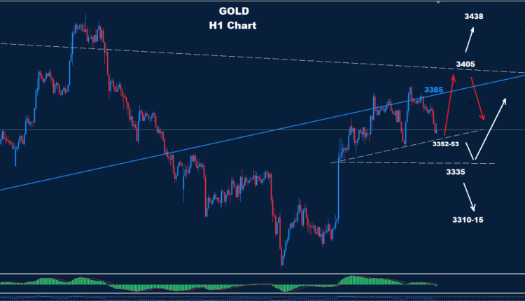 As we see over the Intraday chart, prices still face supports around 3352-53 and 3335 and one of those supports can give another chance for another advance toward 3400.