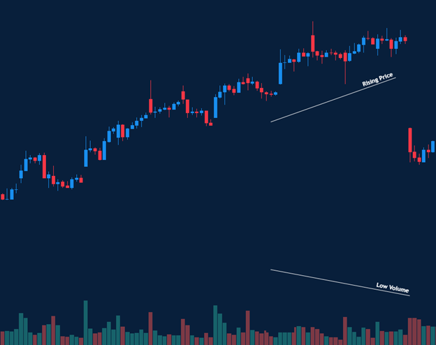 For example, if there is a strong price rise but falling volume, it could mean a weak rally with a possible reversal. With this example, it would be wise to exit the trade and lock in profits. On the flip side, rising prices and rising volume usually mean a strong uptrend, so the exit position can be delayed, leading to a larger potential profit.