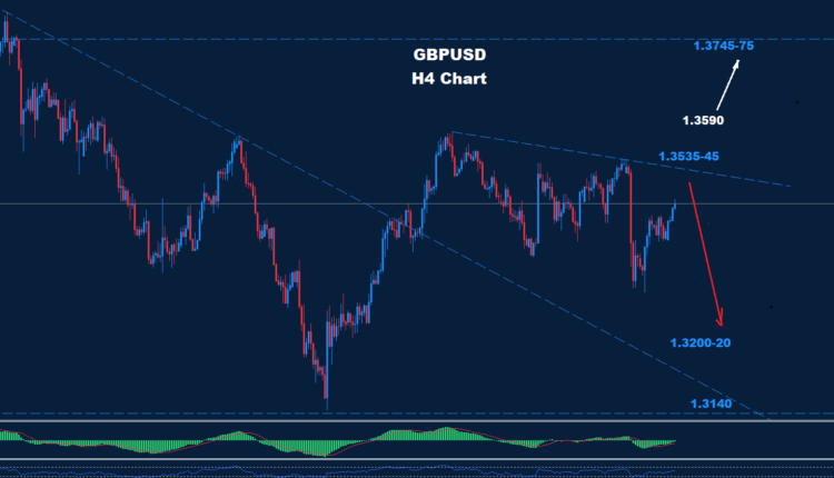 GBPUSD managed to test the resistance of 1.3535-45 as the market still holds below it, which could push for another drop.
