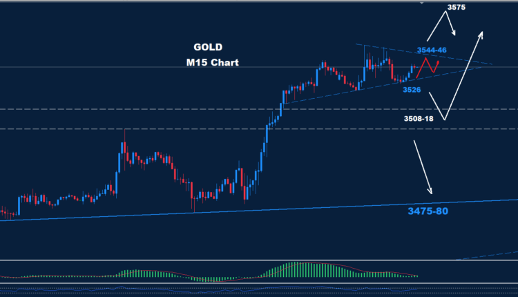 Below 3526, a correction could expand further with support at 3508 still protecting the market from advancing towards 3575.
