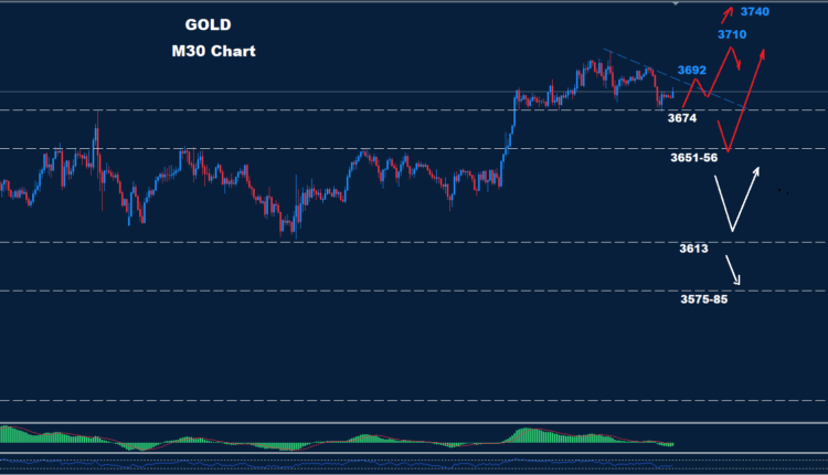 As we see over the chart, prices face supports around 3674 and 3651-56, where one of those supports could maintain the advance wave toward 3710 and 3740.