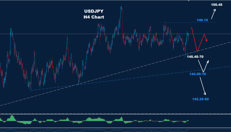 USDJPY managed last Wednesday to test the support of 145.70 and moved lower in a volatile move over the Fed rate cut.