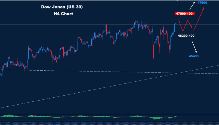 Dow moved above 46700 as the market is still facing the 47000-100 resistance zone.