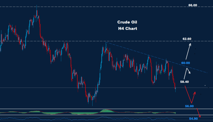 Crude Oil met the target of 58.10 and managed to break below it.