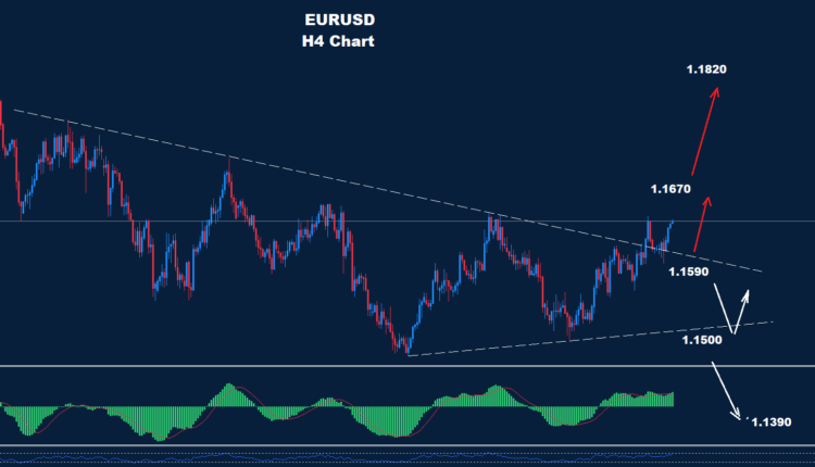 The support trend is still around 1.1590, where as long as prices hold above it, the advance could continue toward 1.1820.