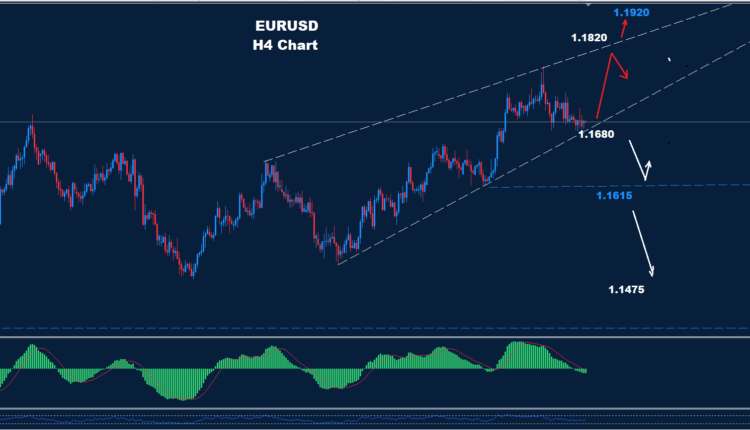 Below 1.1680 more of a drop is likely with support at 1.1615 re-activating the rally again.