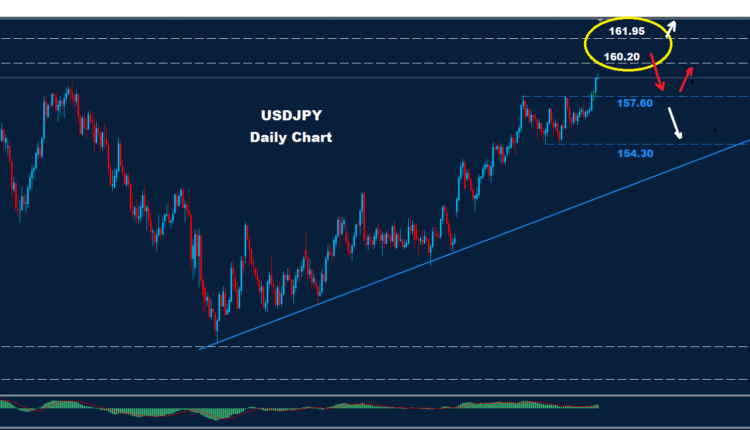 USDJPY hit 158.95 and closed from the target at 159.85.