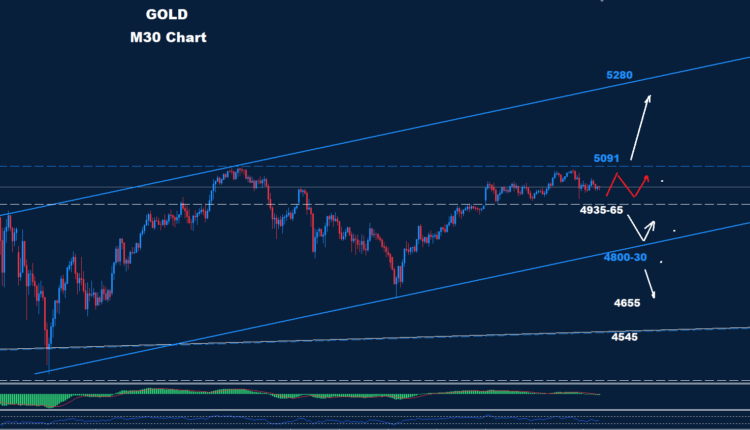 Gold is still holding the advance momentum as we see over the Intraday frame showing the first support at the 4935-65 zone. If prices remain above the said zone, then the advance could extend to attack and test the resistance of 5091 which could lead to a correction.