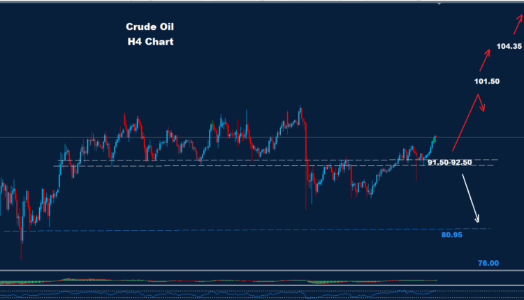 Crude Oil managed to pass above the resistance at 93.00 which could keep the advance wave going towards the target and resistance of 101.50 again.