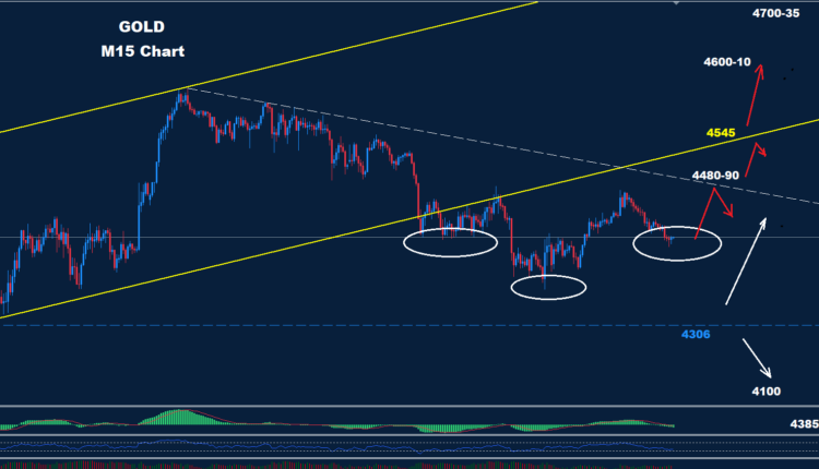 As we see over the Intraday chart, a potential Head & Shoulder reversal is under construction which could lead to a rebound towards the 4480-90 resistance.
