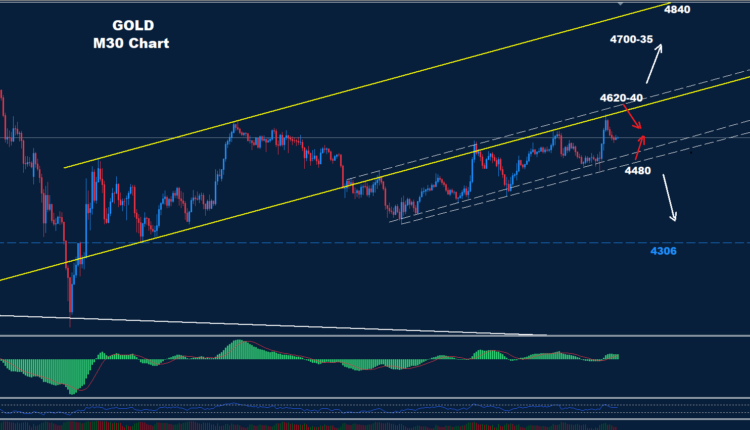 As we see from the Intraday chart, the market is still holding trades inside an uptrend channel with support around 4480 and resistance around 4620-40.
