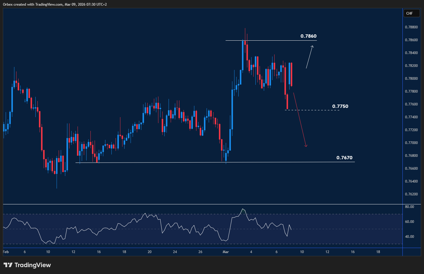 Much like a few forex pairs, the dollar reverses some losses made from last week’s negative jobs reading. The Swiss Franc is another currency pulling back from a resurgent dollar. On the chart, the pair is striving to hit the recent high at 0.7860, which has attracted more short-term buyers. On the downside, 0.7750 is the first hurdle, with a fall below this level opening the door to 0.7670.