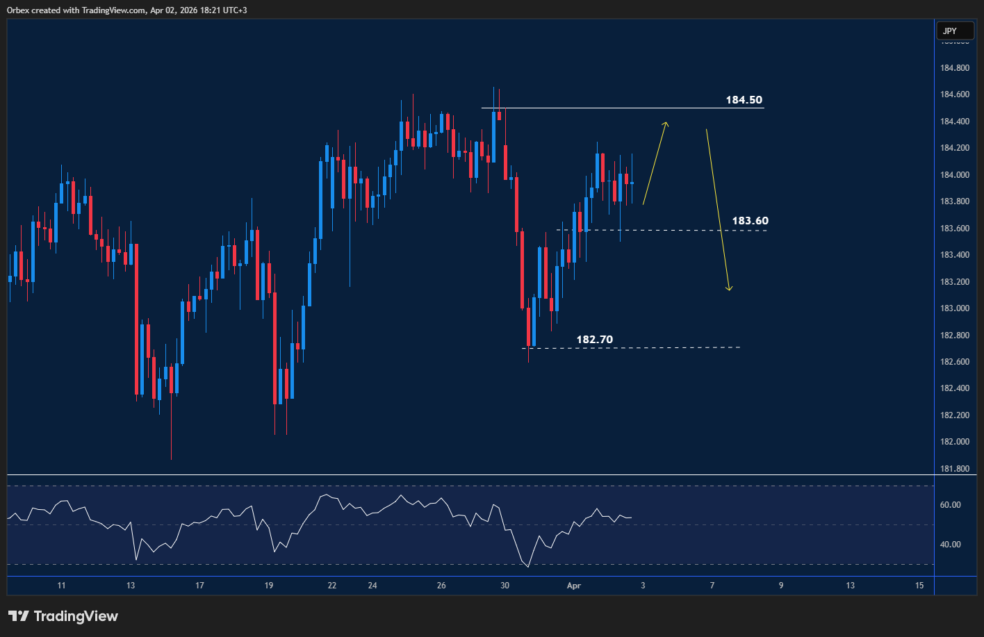 - Buyers could regain control of the direction if they manage to push back above the fresh resistance at 184.50.