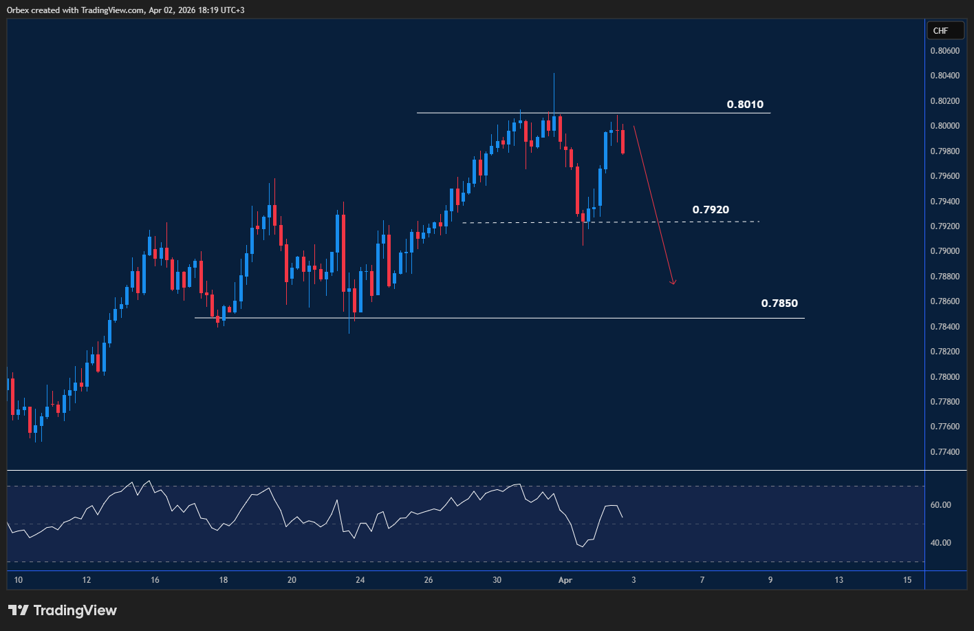 - After hitting the 0.8000 level, the US dollar has shown some weakness, indicating sentiment has shifted to the downside.