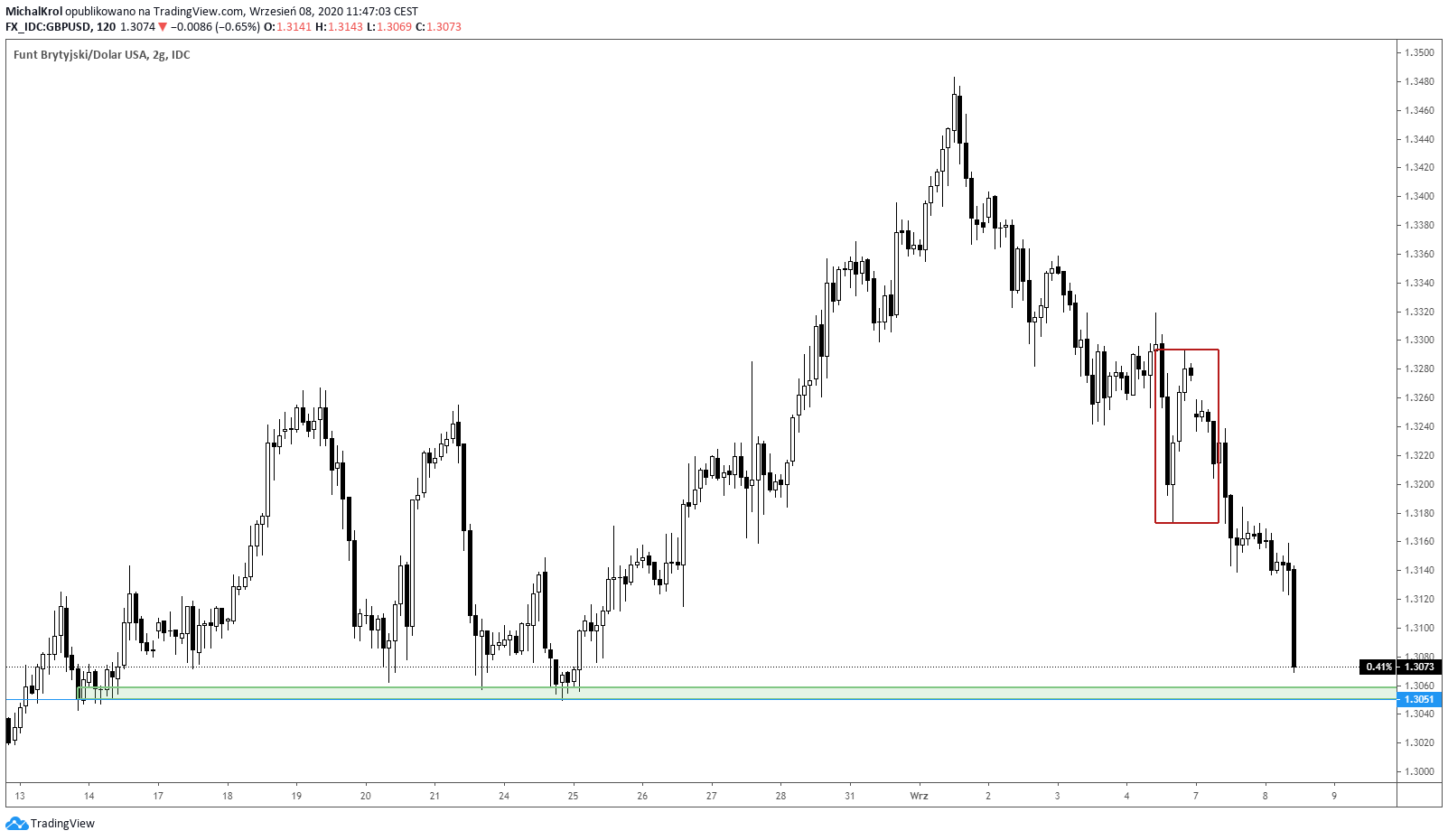 Wraz z początkiem września trend uległ odwróceniu. Wzrost awersji do ryzyka przyczynił się do napływu kapitału do amerykańskiego dolara. Doskonale to widać podczas dzisiejszej sesji europejskiej, gdzie generowane są solidne spadki.