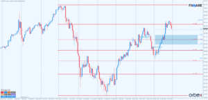 Na wykresie H1 dokładniej widać charakter ostatniego odbicia. Widać, że 26 grudnia, po poprawieniu wierzchołka z 20 grudnia, wczoraj został wyrysowany pinbar, który czubkiem swojego knota dopełnił formację double top. Wystarczyło to niedźwiedziom do rozpędzenia się. Kontra byków na poziomie 156.700 została bezpardonowo wykorzystana do dołożenia krótkich pozycji przez podaż. Dzisiaj spadki są nadal kontynuowane. Jeśli poziom low z 20 grudnia nie powstrzyma spadków, to odwiedzenie poziomów stref konsolidacji na 155.250 i 154.700 staje się coraz bardziej prawdopodobne.