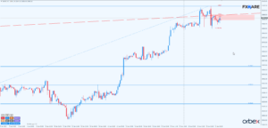 DAX na wykresie D1, po pin barze z 13 stycznia, wyrysował mocny impuls wzrostowy. Impuls ten ustanowił wczoraj nowe rekordy wyceny tego indeksu. Z racji, że cena znajduje się lekko poniżej ATH, historycznie brak na tych poziomach formacji, do których można by odnieść klasyczne PA.