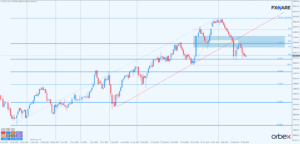 Aktualnie cena walczy na poziomie 38,2% zniesienia tego swingu i, choć odwiedzenie pivota czy nawet poziomu 61,8% nie będzie niczym niezwykłym, to tak długo, jak nastąpi to na niskim momentum, scenariusz spadkowy będzie bardziej prawdopodobny. Negującą alternatywą byłoby wyrysowanie impulsu wzrostowego o momentum podobnym do tego z 30.12 i 2.01 oraz powrót w okolice 42 700, najlepiej jeszcze do końca tego tygodnia.