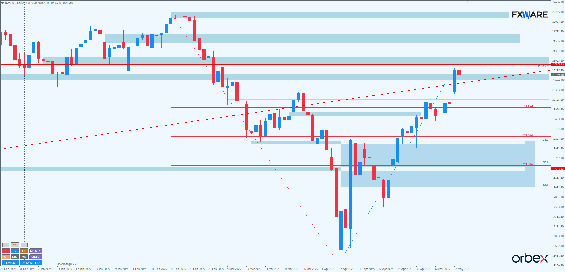 NASDAQ – Wybicie marcowego szczytu i bliskie starcie z RN 21000