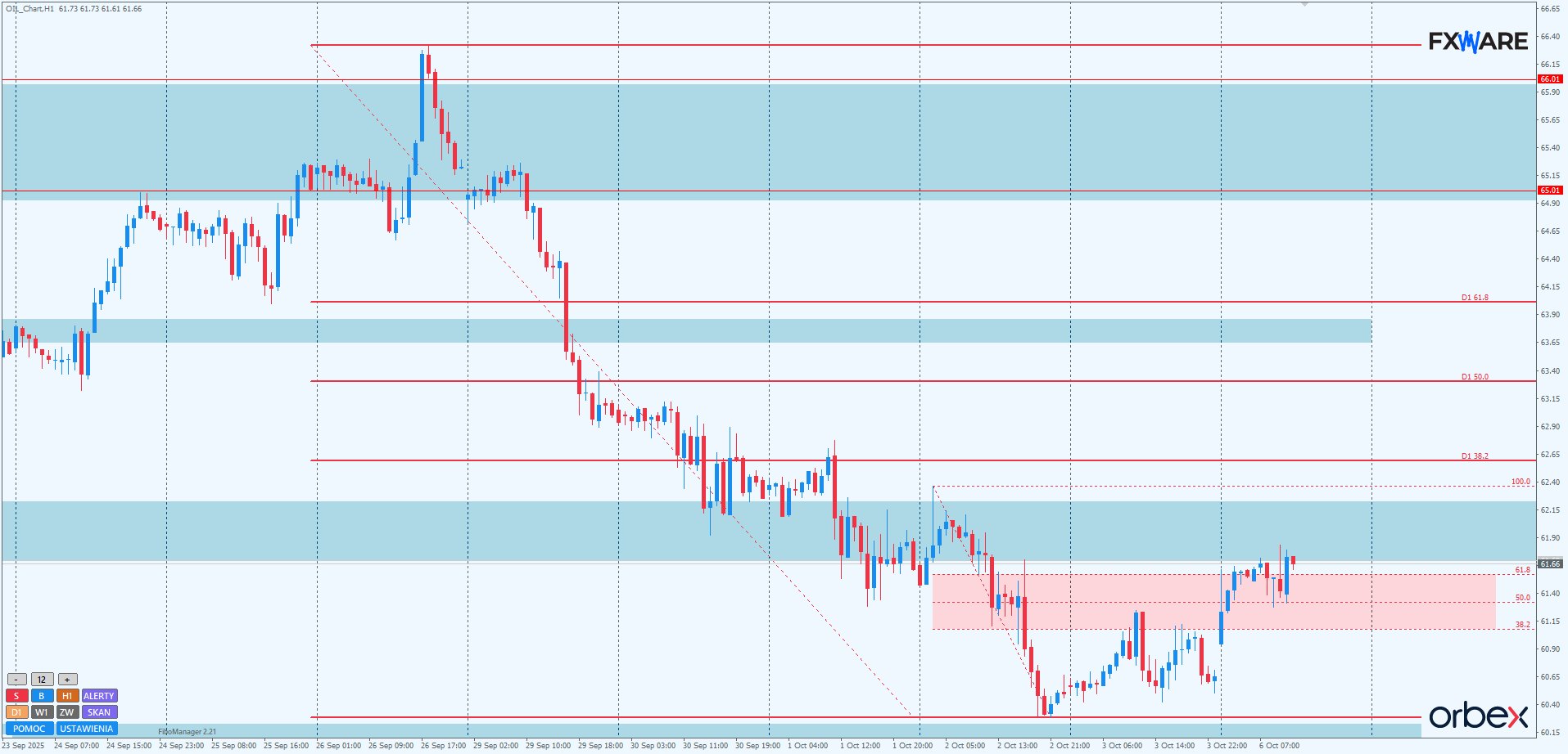 Ropa WTI – Retest SR 62$ w toku, byki próbują odzyskać kontrolę