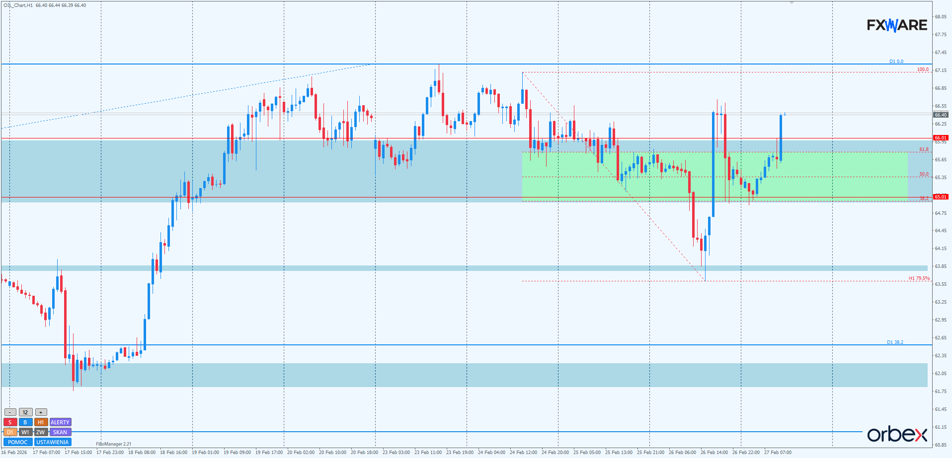 Ropa WTI – byki przejmują kontrolę nad strefą 65-66$