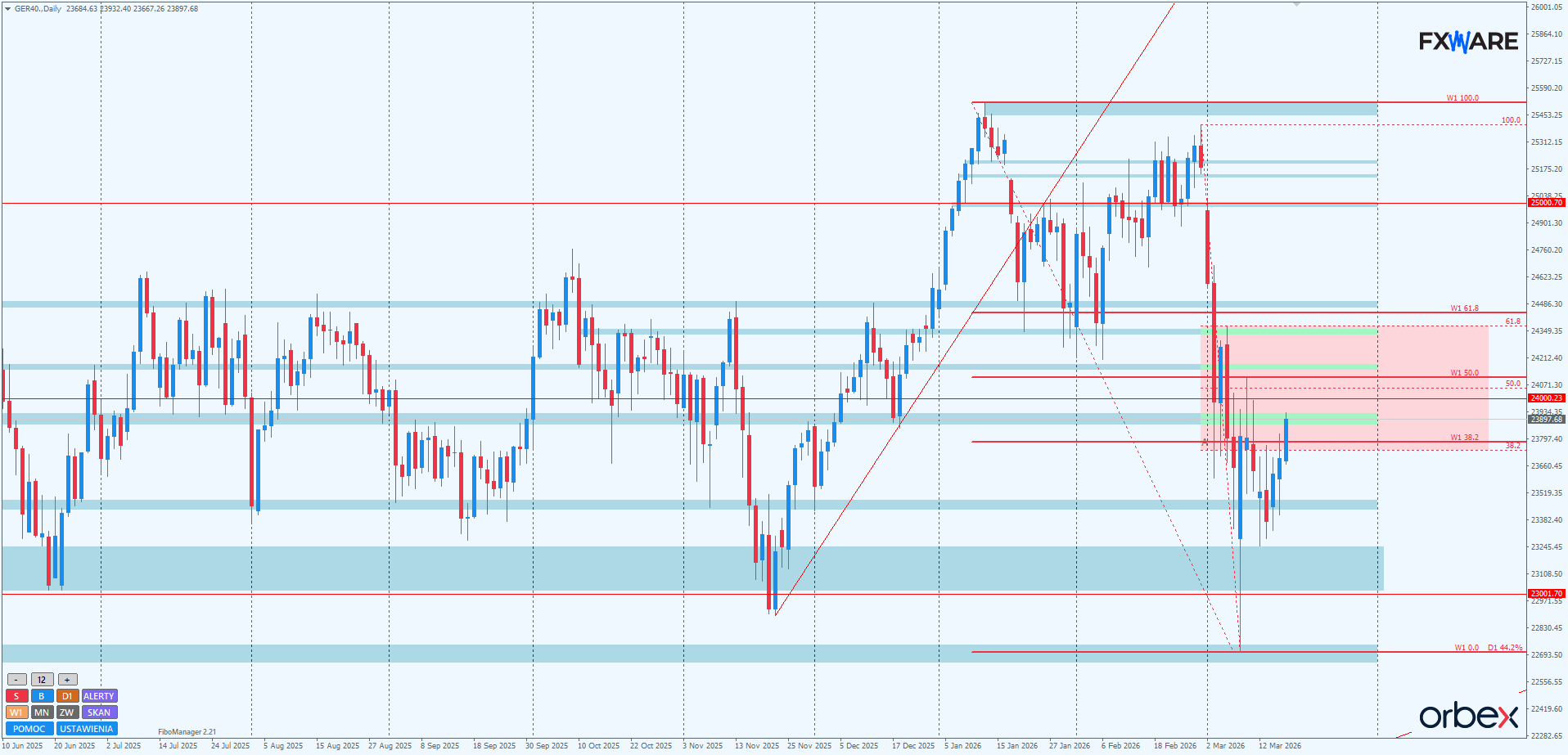 DAX – byki wchodzą w strefę kluczowych zniesień fibo
