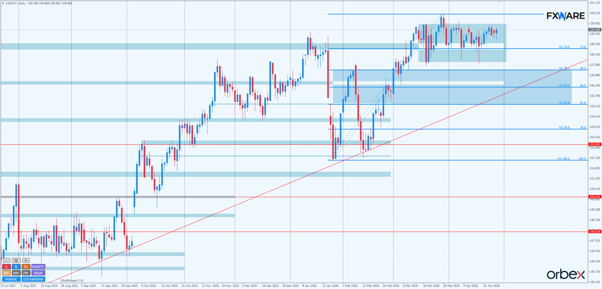 USDJPY- Konsolidacja bez rozstrzygnięcia i oczekiwanie na wybicie